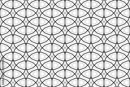 © Hi-Point, Fototapeta premium Repeating geometric pattern in black outline made from thin crossing straight lines and a 16-sided hexadecagon shape