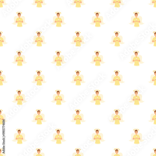 © nsit0108, Fototapeta premium Repeating illustration of angelic figures with halos and wings, hands clasped