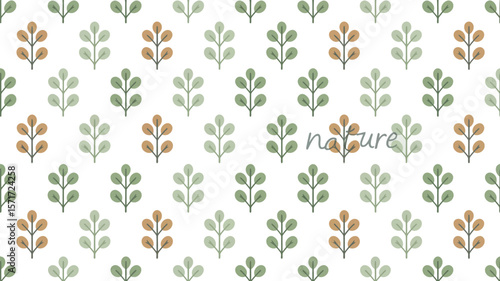 © Adnan, Naklejka premium Repeating leaf pattern with green and brown leaves on a light background color