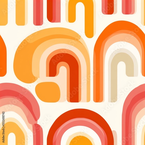 Obraz premium repeating pattern of abstract arches and rainbows, 70s retro palette with...