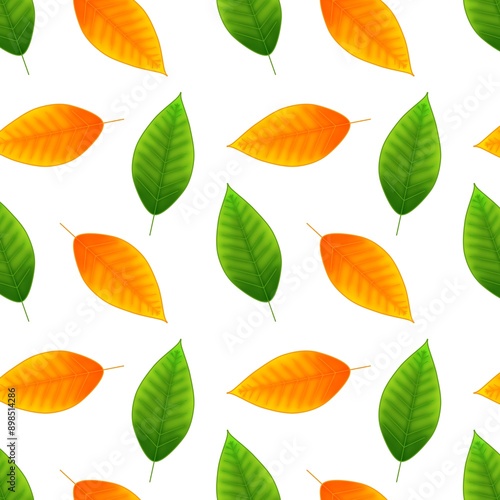 © Yuliya, Obraz premium Repeating raster pattern with orange and green beech leaves