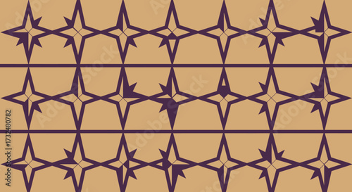 Naklejka premium Repeating star pattern with geometric border on a tan backdrop