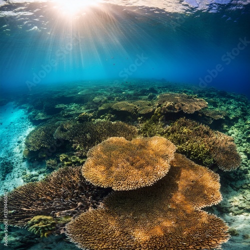 © Jota, Naklejka premium repercussions ecological of lifeless coral reefs, epitomizing of consequences on marine ecosystem, fisheries, and overall well-being of our vast oceans