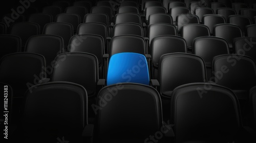 Fototapeta premium Repetitive blackandwhite stadium seats with one blue seat centered