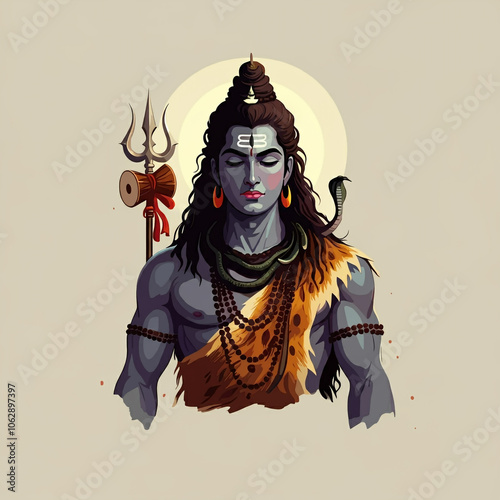 © Deepa, Fototapeta premium Representation of Lord Shiva, a revered deity in Hinduism, symbolizing destruction, creation, and ultimate spiritual power