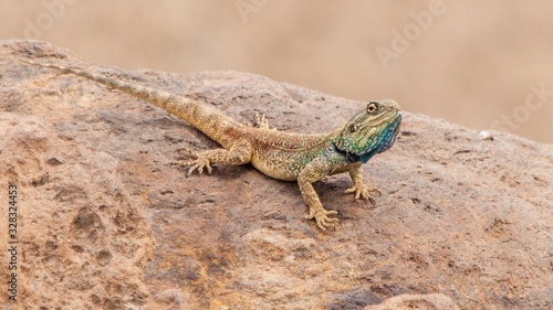 © Jose, Fototapeta premium Reptil africano, lagarto con la cabeza grande y azulada