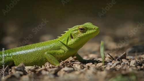 © AugmentArt, Fototapeta premium Reptile basking on the edge of a reservoir