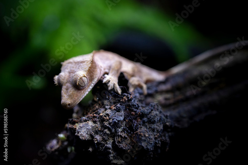 Fototapeta premium Reptile Crested Gecko in nature with beautiful colors in large terrarium