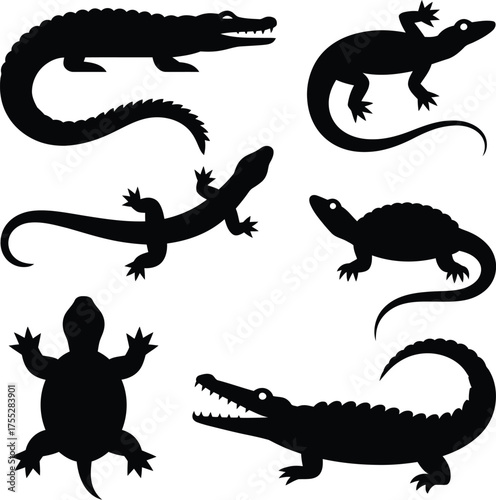 Fototapeta premium Reptile silhouettes bundle alligator crocodile