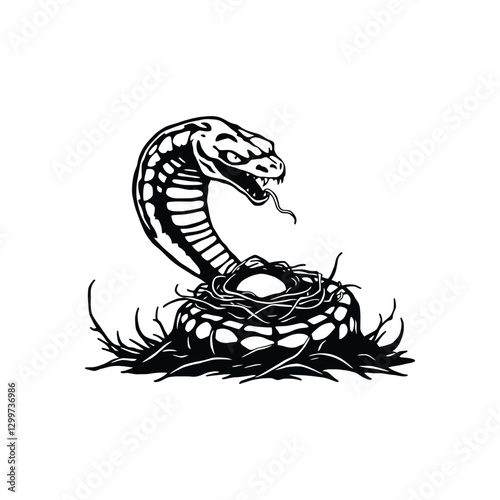 © PaletteGuru, Obraz premium Reptile Snake Protecting Nest Sketch Vector Design Element