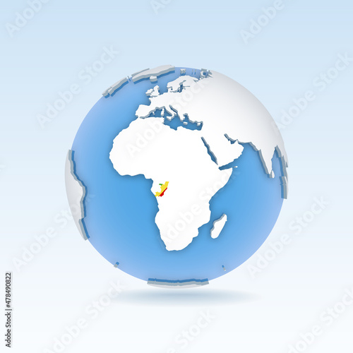 © gt29, Fototapeta premium Republic of the Congo - country map and flag located on globe, world map.