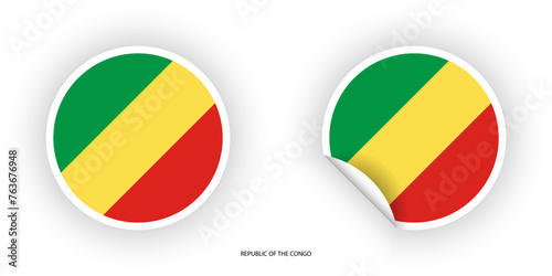Fototapeta premium Republic of the Congo sticker flag icon in circle shape and circular shape with peel off on white background.