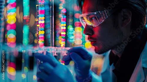 © kanesuan, Fototapeta premium Researcher conducting a gene expression analysis using fluorescence microscopy techniques