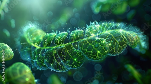 Fototapeta premium Researcher examining plant cells under a microscope in a laboratory.