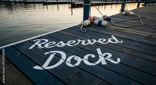 Fototapeta premium Reserved Dock Space At Marina At Dusk Creates Nautical Coastal Dockscape