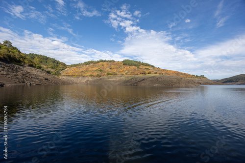 © Azulblue, Naklejka premium Reservoir with low water levels during autumn drought