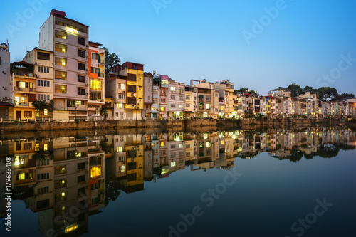 © Hanoi Photography, Fototapeta premium Resident houses and reflection on Tinh Bien lake in Hanoi, Vietnam