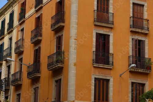 Fototapeta premium Residential apartment building facade, Barcelona, Spain