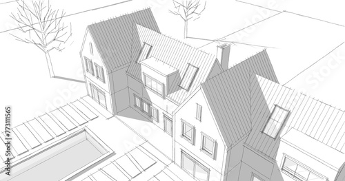 © Svjatoslav, Fototapeta premium residential architecture townhouse 3D illustration