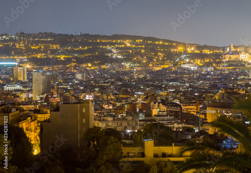 Naklejka premium Residential area of Barcelona at night. View from the top.