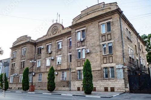 Naklejka premium Residential house built in Soviet epoch on street of Kerch, Crimea. It has...