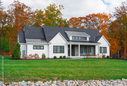 © nd700, Obraz premium residential luxury house with colorful autumn trees