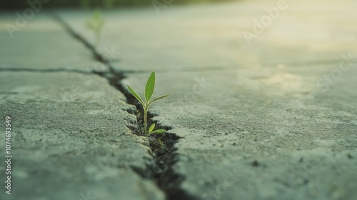© Jakkarin, Fototapeta premium Resilient Nature: Close-up of Cracked Sidewalk with Weeds, Symbolizing Economic Hardship and Strength in Textures and Details