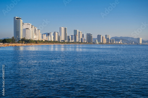 Fototapeta premium Resort city of Nha Trang in Vietnam with a sandy beach by the sea and...