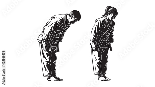 Fototapeta premium Respect and Discipline Karate Bowing Silhouette Martial Arts Training Etiquette Japanese Tradition