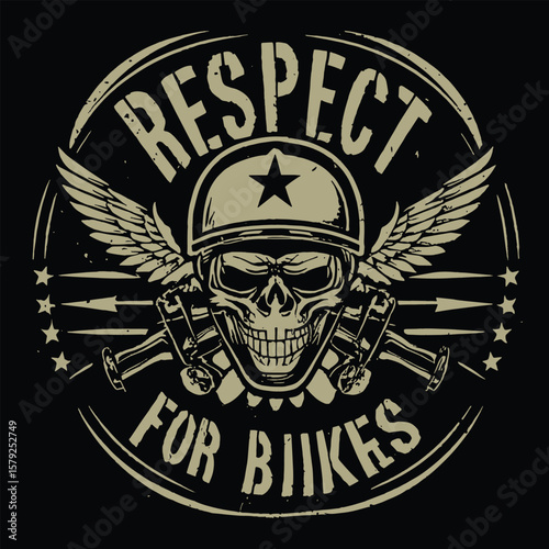 Obraz premium Respect for Bikers Skull and Wings Motorcycle T-Shirt