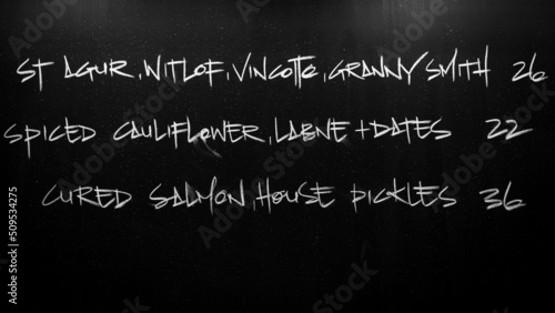 © Greg, Fototapeta premium Restaurant food menu on chalk board