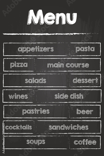 © radub85, Obraz premium Restaurant Menu Food And Drinks On Blackboard