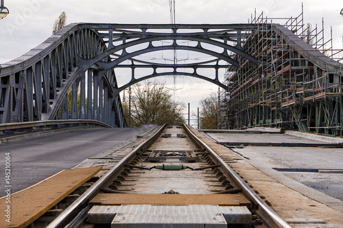 © tangolf, Fototapeta premium Restaurierungsarbeiten auf der Bösebrücke in Berlin