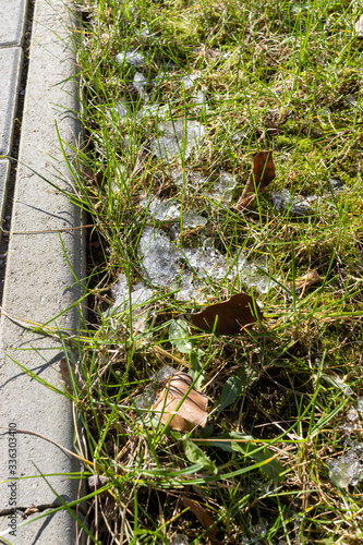 © Tina, Obraz premium Reste von Schnee auf dem Gras
