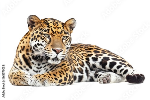 © BWS Stock, Obraz premium Resting Jaguar Portrait with Spotted Fur Isolated on White Background
