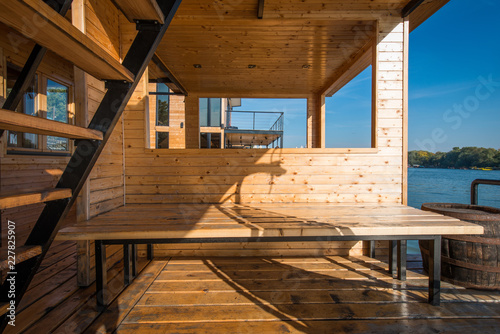 © poplasen, Fototapeta premium Resting place on balcony of river house