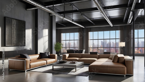 © AI machine, Fototapeta premium resting place, rest,Industrial Chic: Urban vibes blend with sleek metal finishes for modern comfort, Generative AI