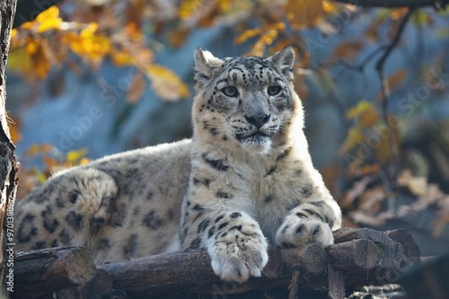 © vladislav333222, Obraz premium resting snow leopard, Uncia uncia, portrait.
