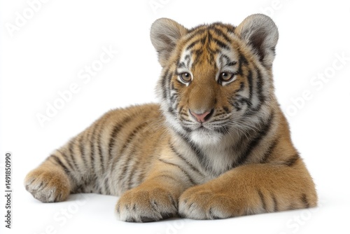 © Dzikrul Husnani, Fototapeta premium Resting Tiger Cub on White Background in Studio Light