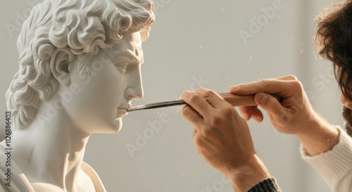 © Sergey, Obraz premium Restoring classical sculpture with precision care