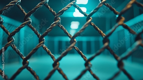 Fototapeta premium Restricted View: A View Through a Chain-Link Fence in a Darkened Space.