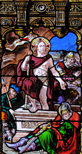 Fototapeta premium Resurrection of Christ, stained glass windows in the Saint Gervais and Saint...