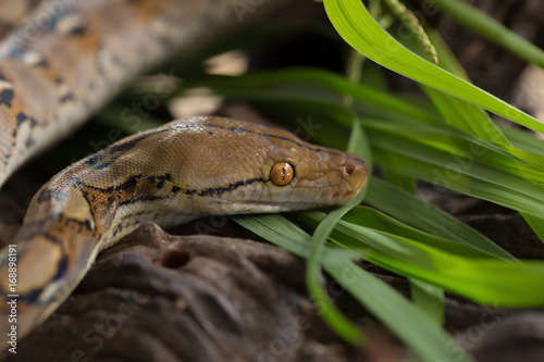 © kaiskynet, Obraz premium Reticulated python, Boa constrictor snake on tree branch