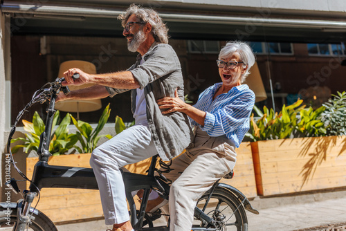© bernardbodo, Obraz premium Retired couple on bicycle.