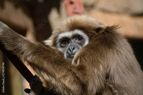Fototapeta premium Retrato d eun gibón de manos blancas
