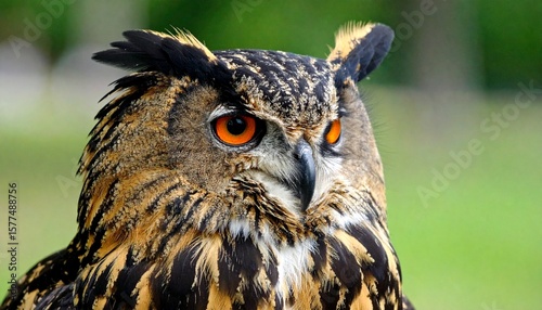 Fototapeta premium retrato de cerca de un búho real eurasiático (Bubo bubo). La imagen se centra...