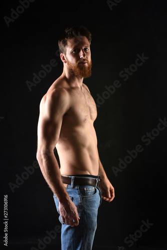 © Curto, Fototapeta premium Retrato del hombre sin camisa y con el fondo negro.