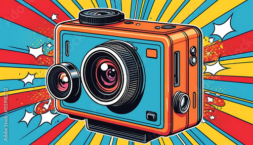 Fototapeta premium Retro Action Camera in Pop Art Style