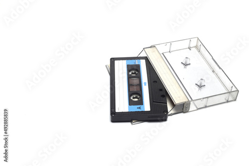 Fototapeta premium Retro audio cassette tape from the 80s and 90s on a white background.