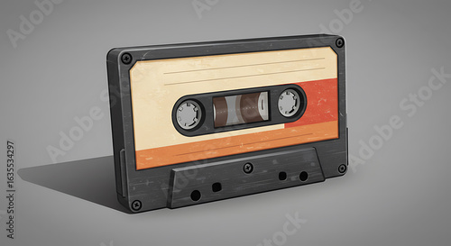 Obraz premium Retro Audio Cassette Tape Illustration on Gray Background